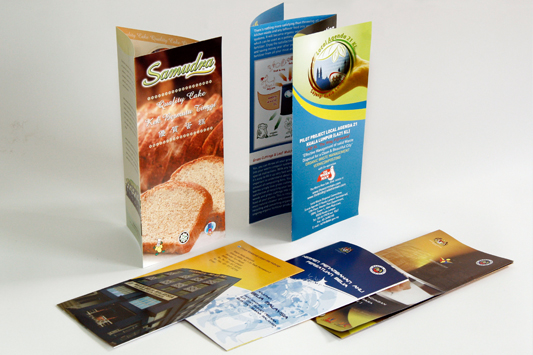 The most common types of single-sheet brochures are the bi-fold (a single sheet printed on both sides and folded into halves) and the tri-fold (the same, but folded into thirds). A bi-fold brochure results in four panels (two panels on each side), while a tri-fold results in six panels (three panels on each side).